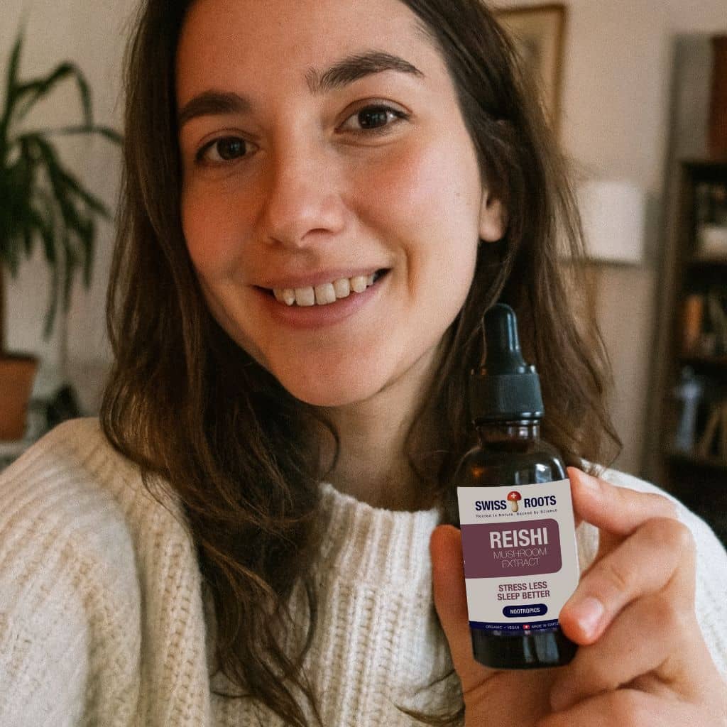 Swiss Roots Reishi Pilzextrakt wurde entwickelt, um Entspannung und Balance zu fördern. Mit einem 20:1-konzentrierten Extrakt entspricht jede 1-ml-Dosis 4 000 mg getrockneter Pilze. Reishi wird traditionell für seine beruhigenden Eigenschaften geschätzt und wird hier als Schweizer Nootropikum präsentiert, das hilft, Stress zu reduzieren und die Schlafqualität zu unterstützen.